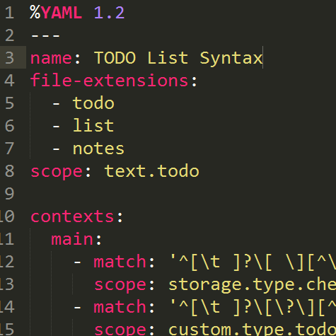 In this tutorial we take you through the process of creating a syntax in YAML for Sublime Text. We'll be making a simple syntax for TODO list files.