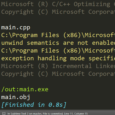 In this tutorial we go through the process of setting up a custom Sublime Text build tool that calls our build.bat file in our project directory, captures error output, and uses a custom syntax to color the output from the MSVC compiler.
